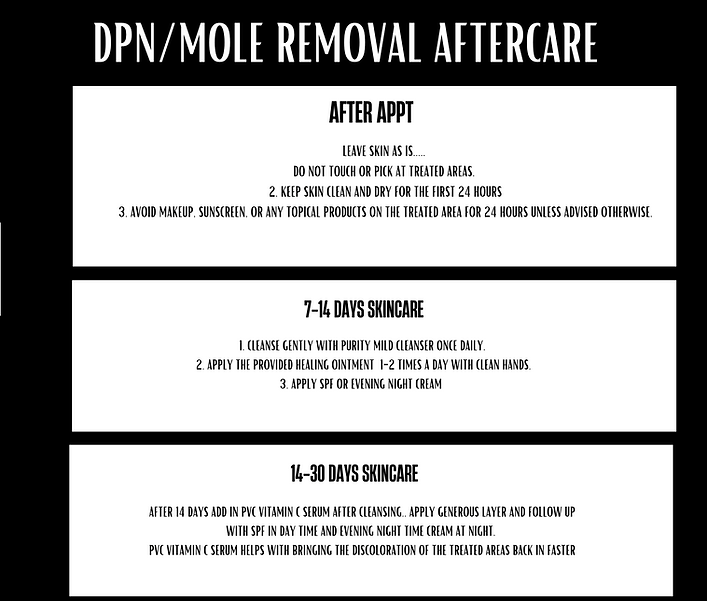 SCROLL DOWN FOR HERBAL PEEL & DPN/MOLE AFTERCARE
