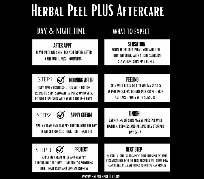 DO'S & DONT'SDo not cleanse skin for 5 days or until the majority of peeling is finishedDo not pick skin or peel skin, for larger flakes please carefully use scissors to clip dead skin away.DO drink plenty of waterDo reapply moisturizer as much as needed* skin may be red, itchy, swollen for a couple days, this is normalBB cream recommendations at ULTA or Sephora .